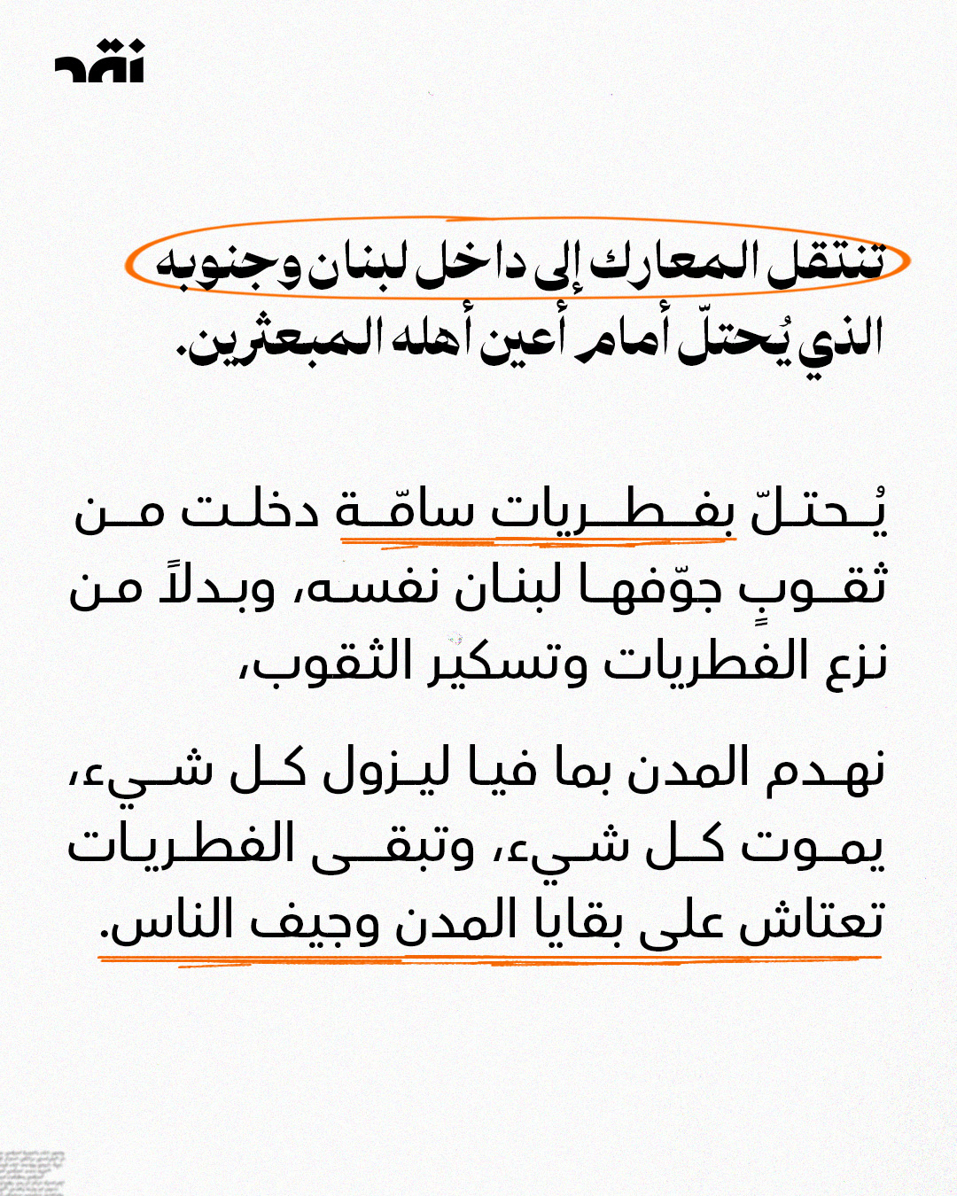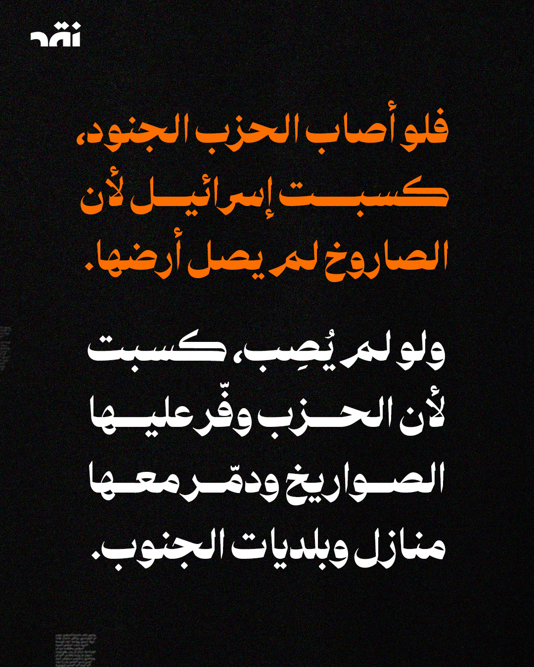 استهدف حزب الله أمس بلدية #الخيام ومحيطها، لوجود الجيش الإسرائيلي فيها. خبرٌ مرّ بين عناوين الأحداث المتسارعة، لكنه ليس خبراً عابراً. توغّل إسرائيل في الجنوب كتوغّل الفطريات من ثقب الحائط. ثقبٌ فتحه حزب الله بإطلاق صواريخه الستّة .قبل ذلك، لم يكن لفطريات #إسرائيل ثقبٌ تدخل منه إلى الخيام وبلديتها، فتنقل المعركة من حدودها إلى داخل #لبنان وقراه.