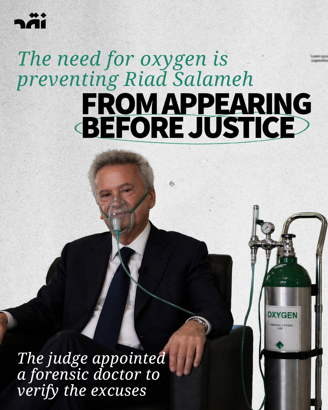 في ملف #رياض_سلامة، حاكم مصرف لبنان السابق، توقّفت الاستجوابات في الفترة الأخيرة بعد تخلّفه عن المثول، مقدّمًا عبر وكيله القانوني أعذارًا طبية تفيد بتدهور حالته الصحية، وحاجته إلى نحو 10 ليترات من الأوكسيجين يوميًا، نتيجة مشكلات في القلب والجهاز التنفّسي.