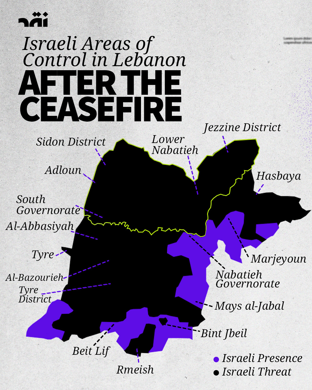 خريطة السيطرة الاسرائيلية في لبنان بعد وقف اطلاق النار