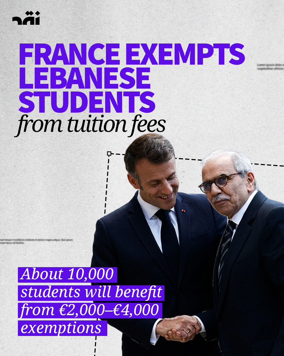 بعد زيارة رئيس الوزراء #نواف_سلام إلى باريس، أعلن الرئيس الفرنسي إيمانويل ماكرون عن قرار إعفاء #الطلاب_اللبنانيين المسجّلين في #الجامعات_الحكومية_الفرنسية من رسوم التسجيل للعام الدراسي المقبل، نظرًا للظروف الاقتصادية والأمنية الصعبة التي يمرّ بها لبنان. ويشمل هذا القرار نحو 10 آلاف طالب لبناني يدرسون في الجامعات الفرنسية الحكومية.
