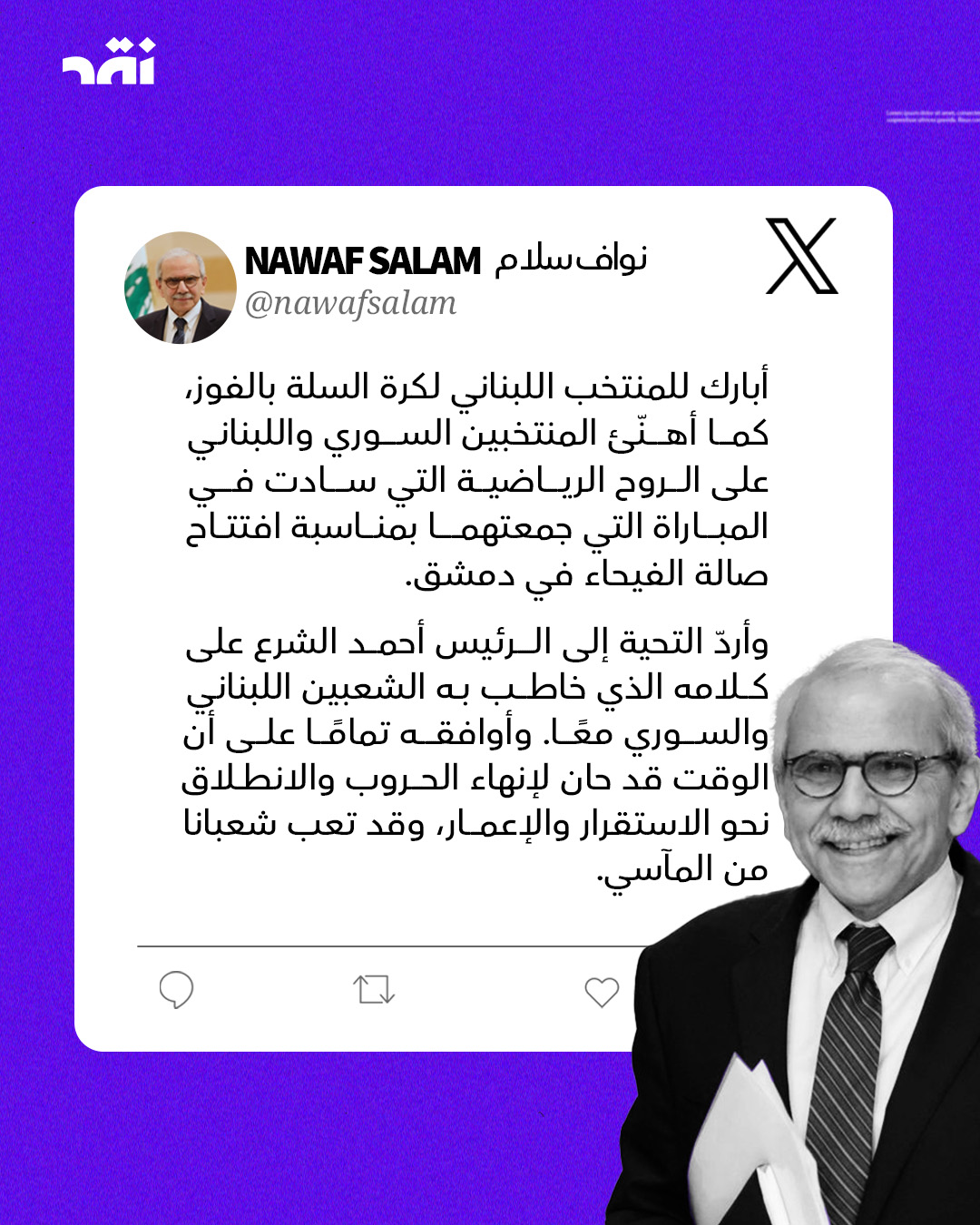 شهدت دمشق أمس مباراة كرة سلة ودية جمعت المنتخبين اللبناني والسوري، تخلّلها كلمة للرئيس #أحمد_الشرع أكّد فيها الروابط التي تجمع الشعبين اللبناني والسوري.
