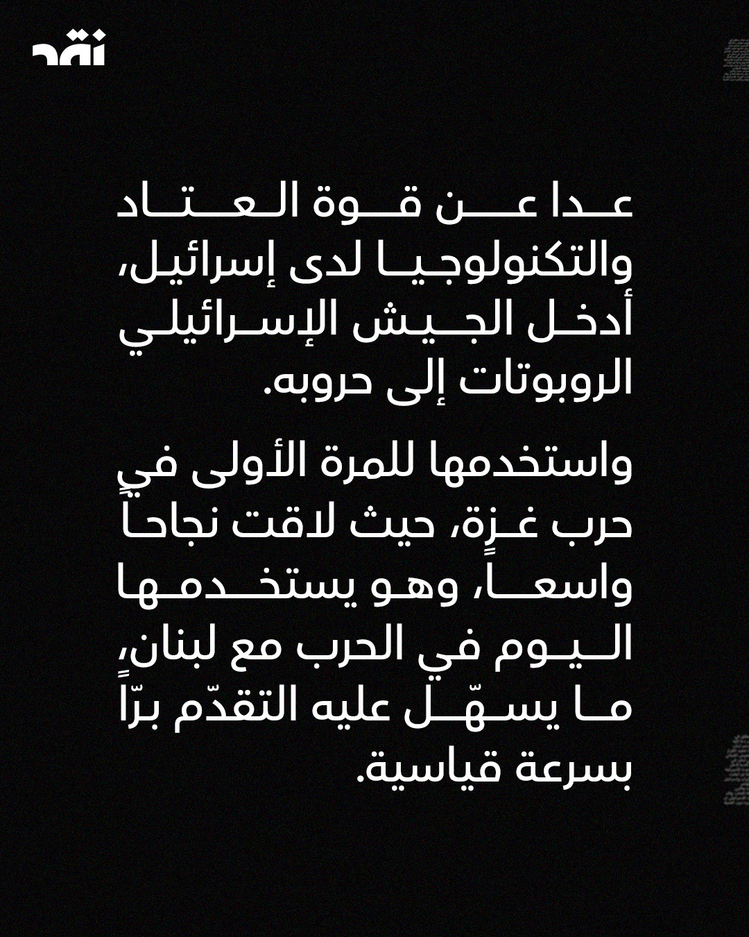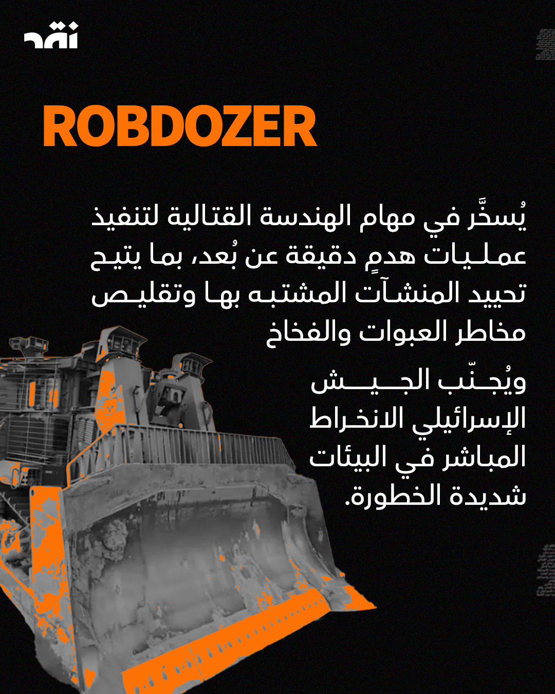 يعتمد #الجيش_الإسرائيلي على منظومة روبوتات متعدّدة الوظائف، من الاستطلاع إلى الهدم عن بُعد، لإعادة تشكيل ساحة المعركة، تمهيدها، وتقليص تعرّض جنوده للنيران، كما في #غزة واليوم #جنوب_لبنان.